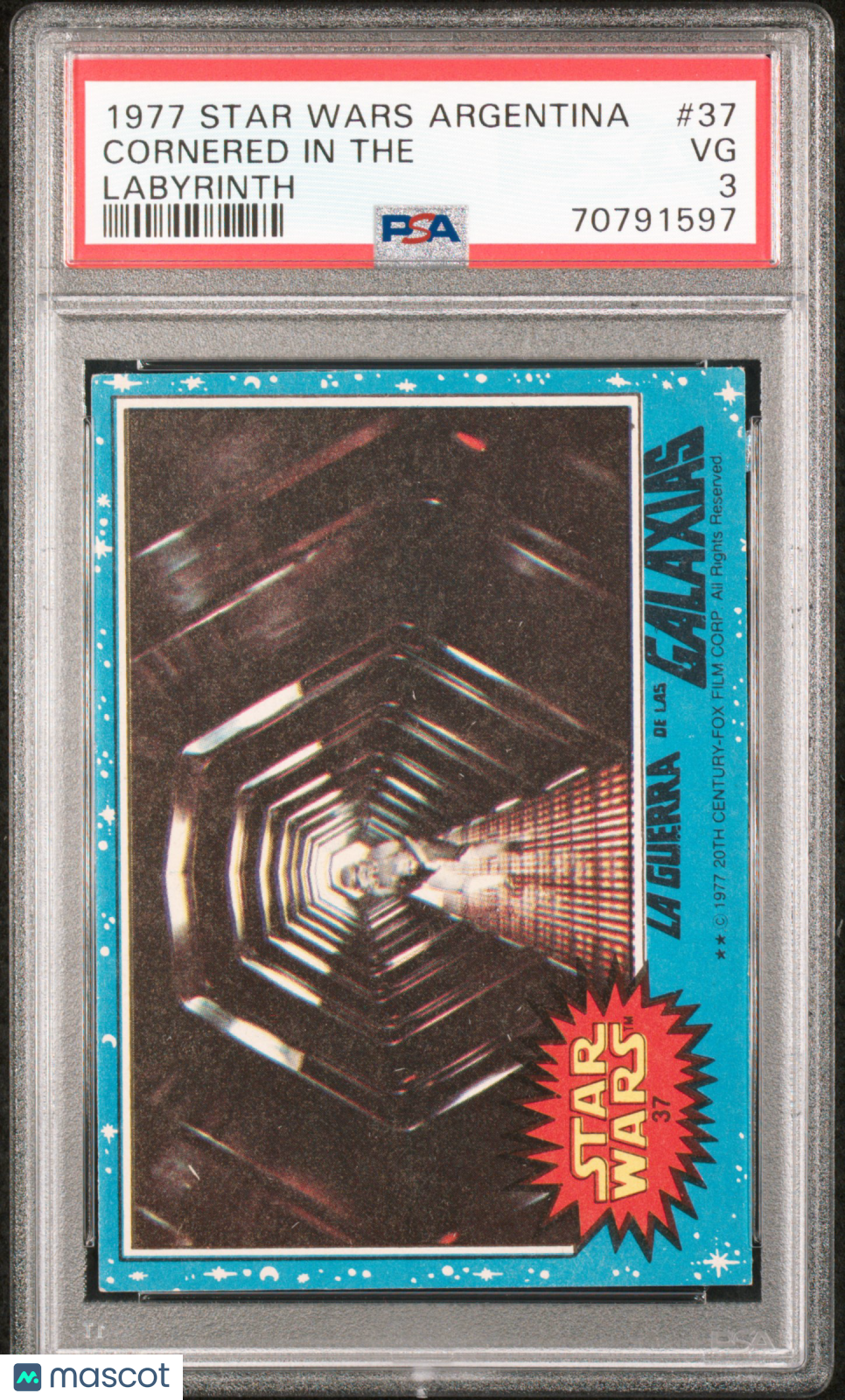 You are purchasing a 1977 Star Wars Argentina Stani Cornered In The Labyrinth #37 PSA 3. You will receive the exact item in the photographs. Thank you for looking. Listed With Mascot.