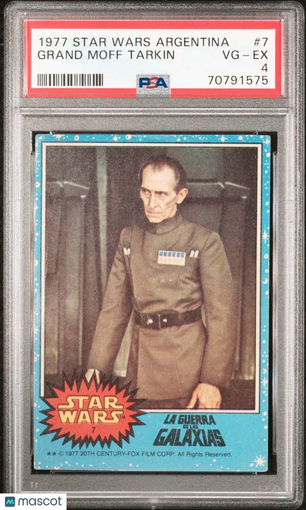 You are purchasing a 1977 Star Wars Argentina Stani Grand Moff Tarkin #7 PSA 4. You will receive the exact item in the photographs. Thank you for looking. Listed With Mascot.