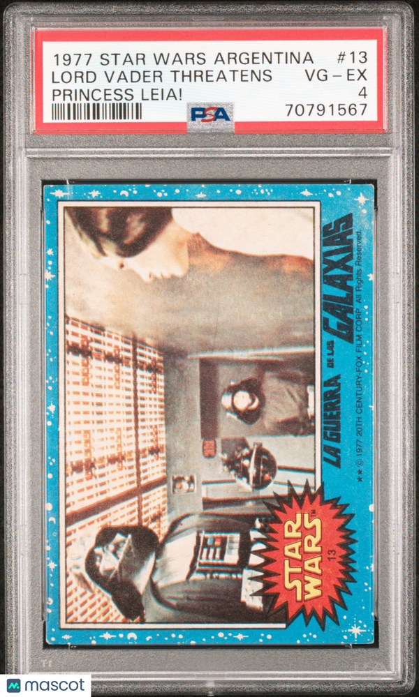 You are purchasing a 1977 Star Wars Argentina Stani Lord Vader Threatens Princess Leia! #13 PSA 4. You will receive the exact item in the photographs. Thank you for looking. Listed With Mascot.