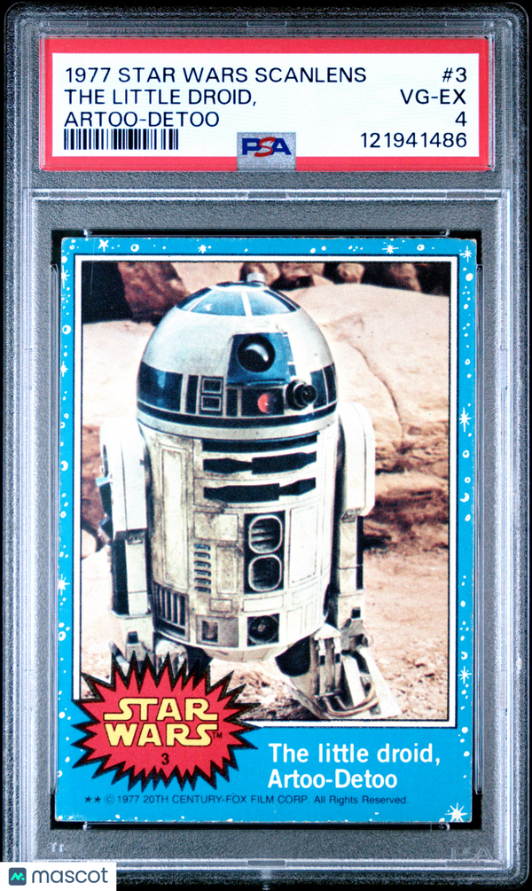 You are purchasing a 1977 Star Wars Scanlens The Little Droid, Artoo Detoo #3 PSA 4. You will receive the exact item in the photographs. Thank you for looking. Listed With Mascot.