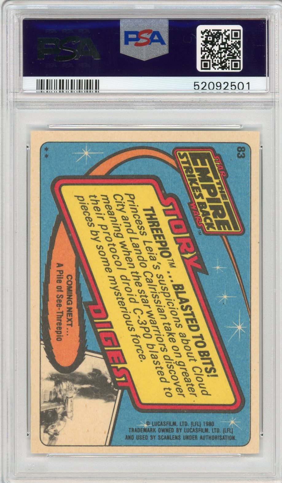 1980 Star Wars Scanlens Empire Strikes Back Threepio.. Blstd Bits! #83 PSA 7