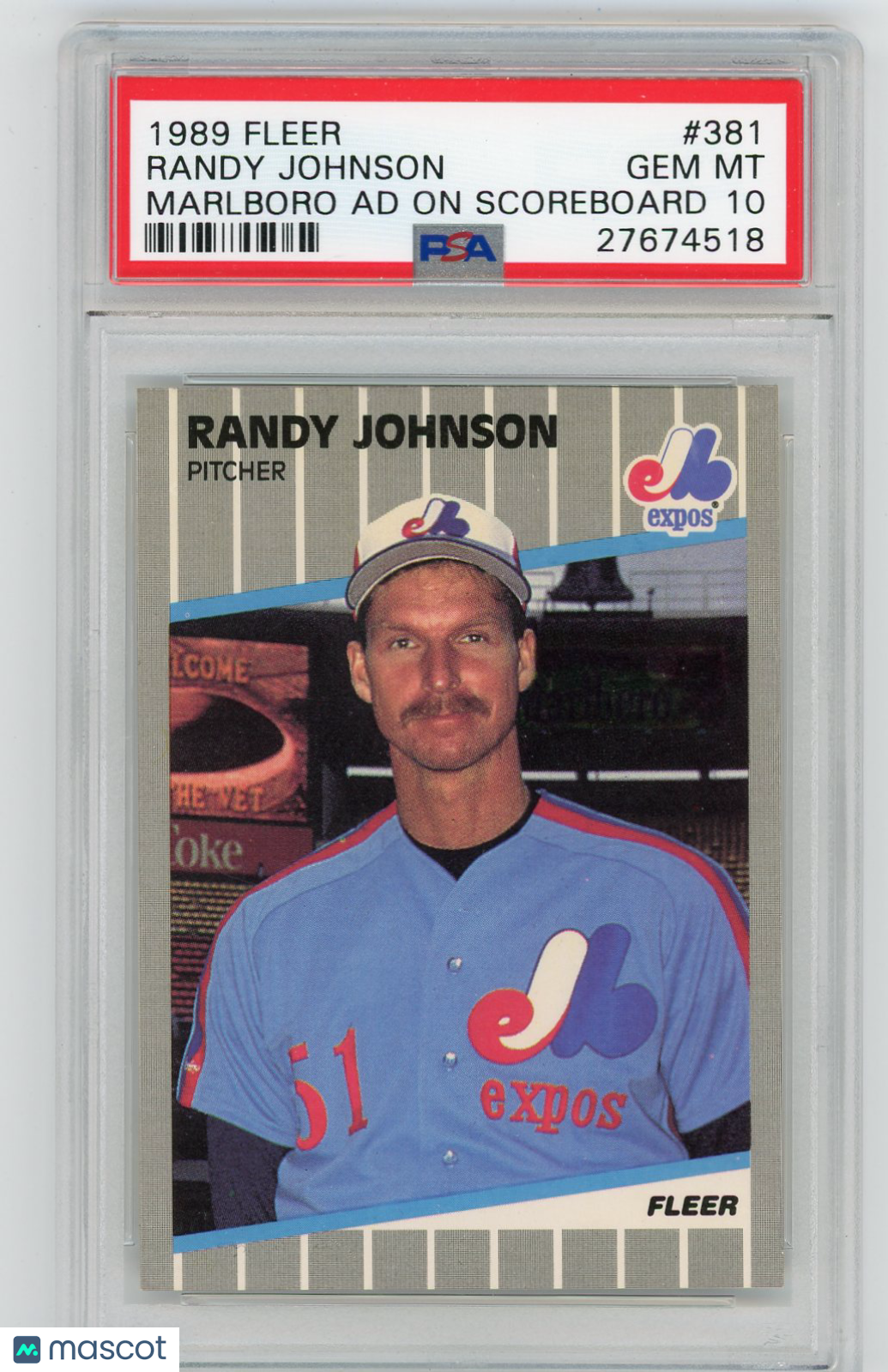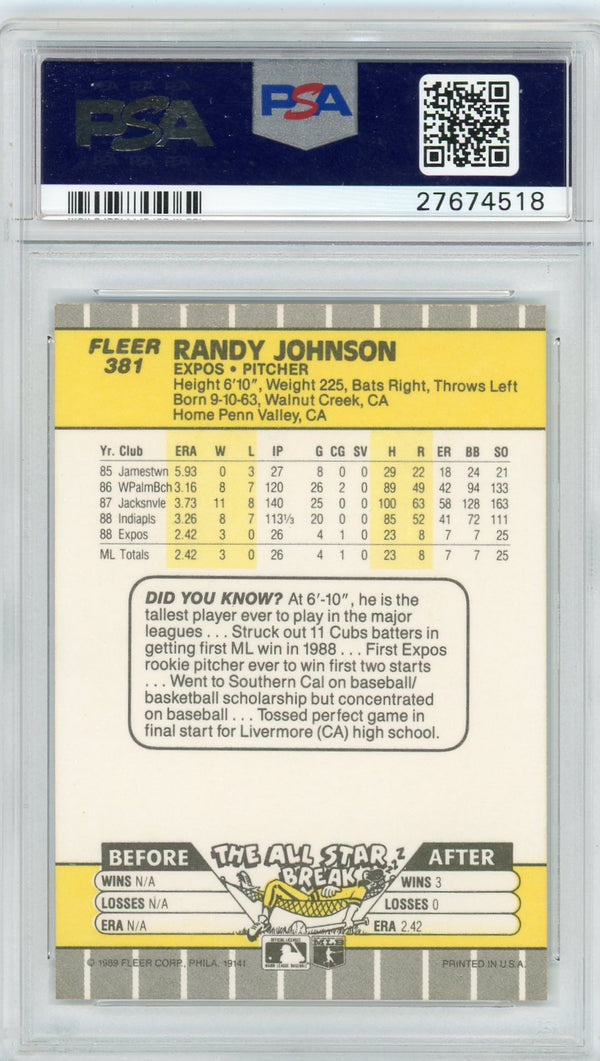 1989 Fleer Randy Johnson #381 Marlboro Ad On Scoreboard Error PSA 10
