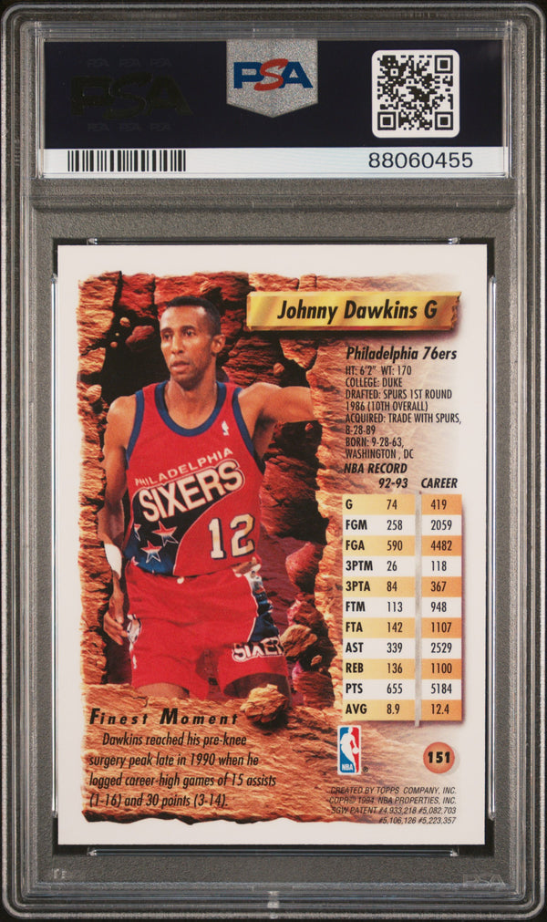 1993 Finest Basketball Johnny Dawkins #151 Refractor PSA 7
