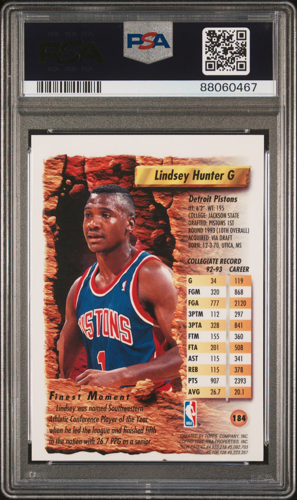 1993 Finest Basketball Lindsey Hunter #184 Refractor PSA 7