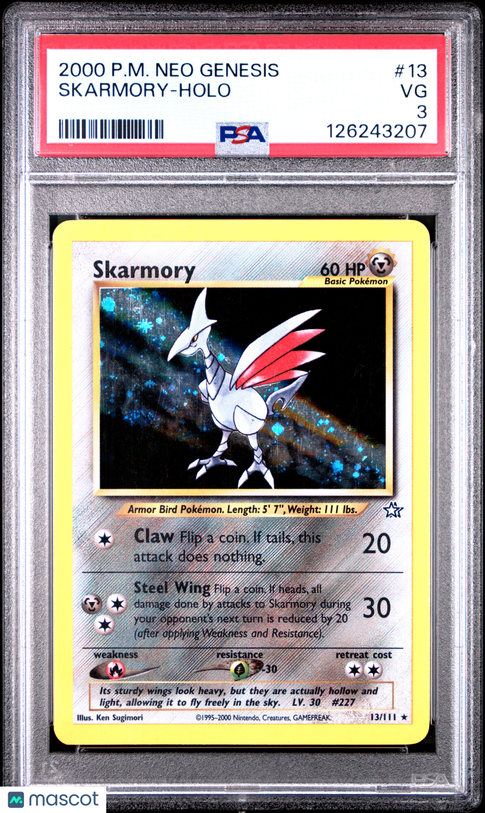 You are purchasing a 2000 Pokemon Neo Genesis Skarmory Holo PSA 3 #13. You will receive the exact item in the photographs. Thank you for looking. Listed With Mascot.