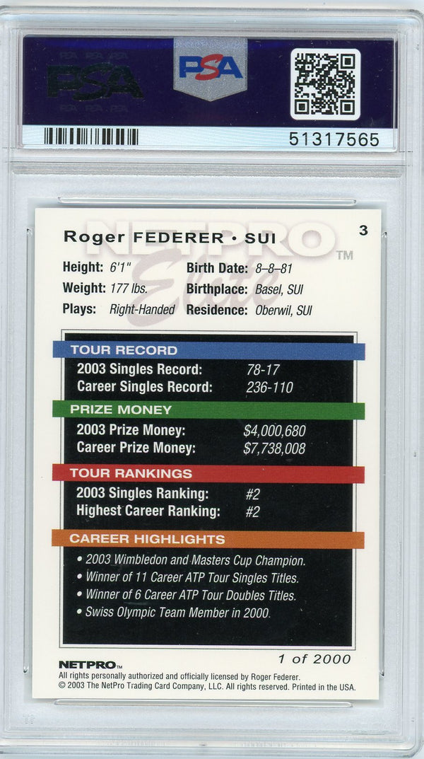 2003 Netpro Elite 2000 Roger Federer #3 PSA 10