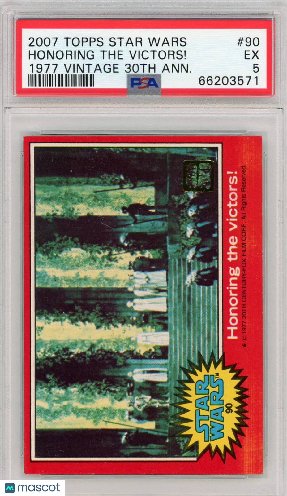 You are purchasing a 2007 Topps Star Wars 1977 Vintage 30th Anniversary Stamped Card Honoring The Victors! #90 PSA 5. You will receive the exact item in the photographs. Thank you for looking. Listed With Mascot.