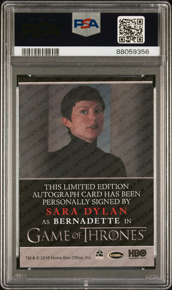 2018 Game Of Thrones Season 7-Autograph Sara Dylan Bordered PSA 9