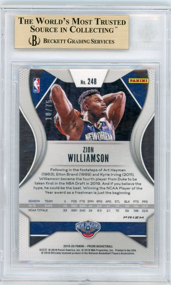 2019 Panini Prizm Zion Williamson #248 Fast Break Purple Prizm BGS 9.5
