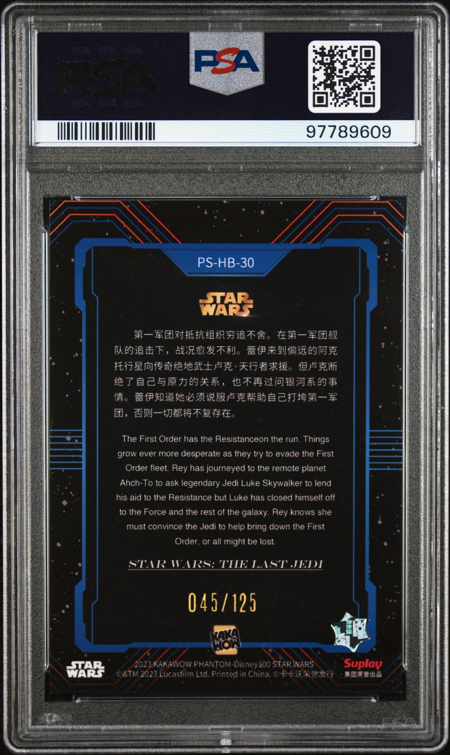 2023 Kakawow Phantom Disney100 Star Wars Posters SW: The Last Jedi #30 PSA 9