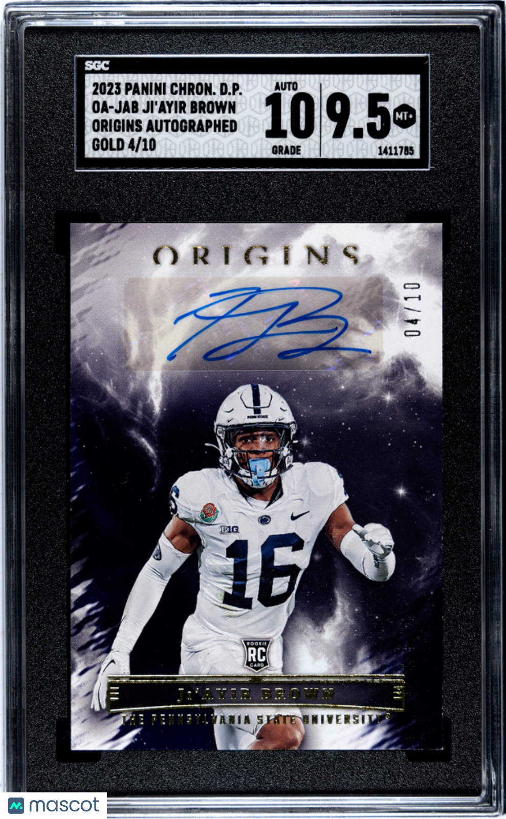 You are purchasing a 2023 Panini Chronicles Draft Picks Football Ji'ayir Brown #OA-JAB Origins Autograph Gold SGC 9.5 Auto 10. You will receive the exact item in the photographs. Thank you for looking. Listed With Mascot.