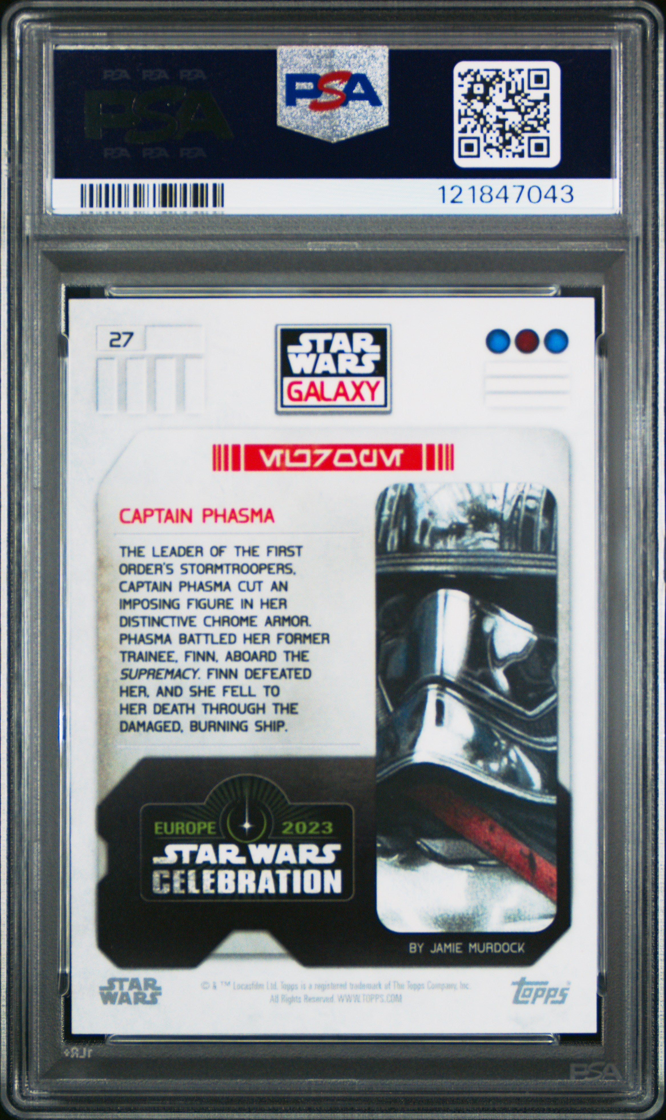 You are purchasing a 2023 Star Wars Galaxy Celebration Europe Captain Phasma #27 Purple PSA 10. You will receive the exact item in the photographs. Thank you for looking. Listed With Mascot.