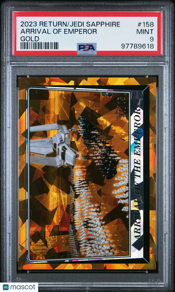 You are purchasing a 2023 Topps Chrome Sapphire Star Wars Return Of The Jedi Arrival Of Emperor #158 Gold PSA 9. You will receive the exact item in the photographs. Thank you for looking. Listed With Mascot.