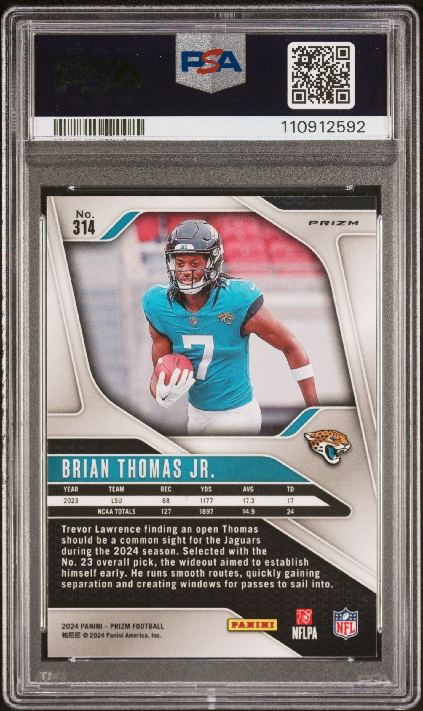 You are purchasing a 2024 Panini Prizm Football Brian Thomas JR. #314 Silver PSA 8. You will receive the exact item in the photographs. Thank you for looking. Listed With Mascot.