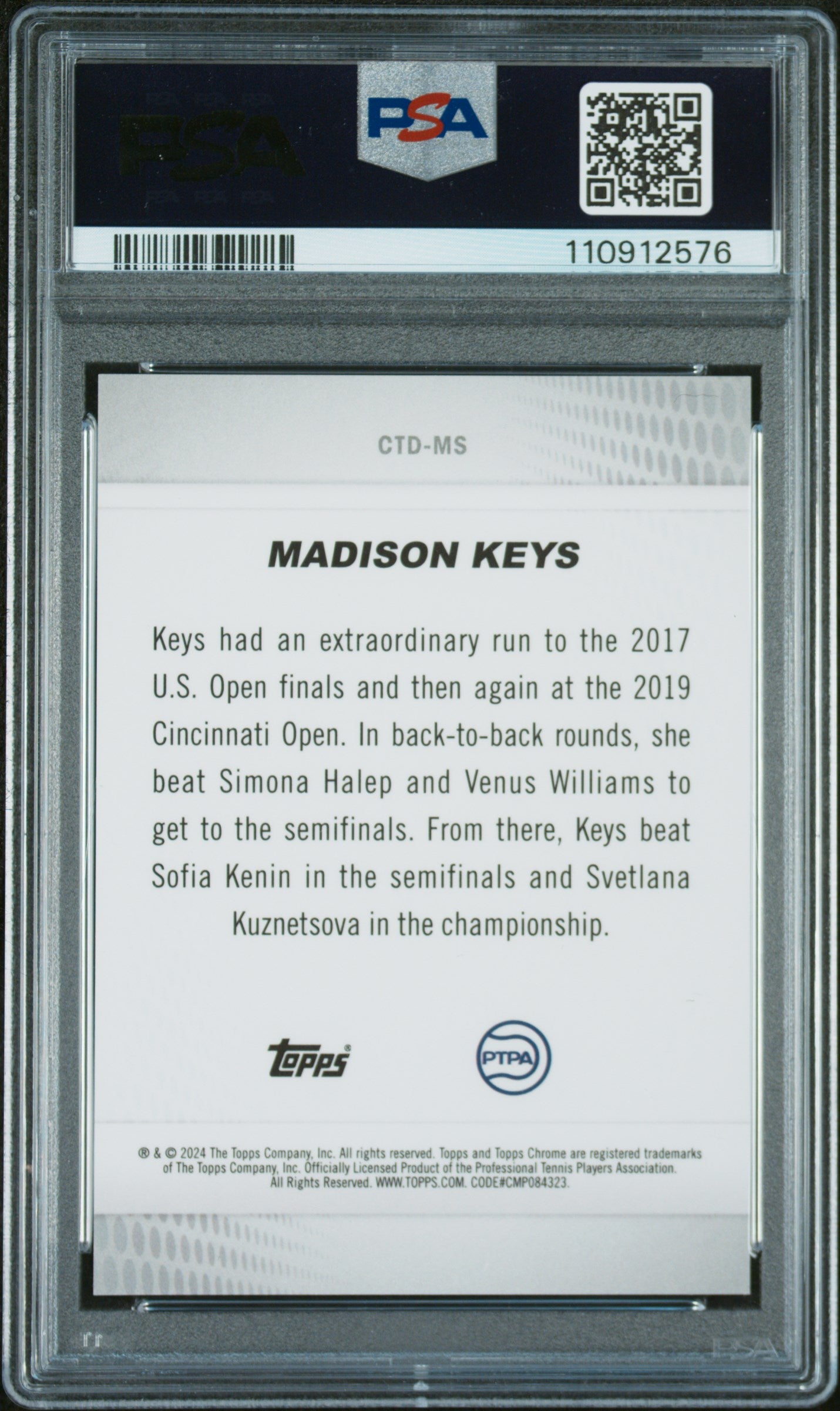 2024 Topps Chrome Tennis Captured Madison Keys #CTDMS Superfractor 1/1 PSA 9