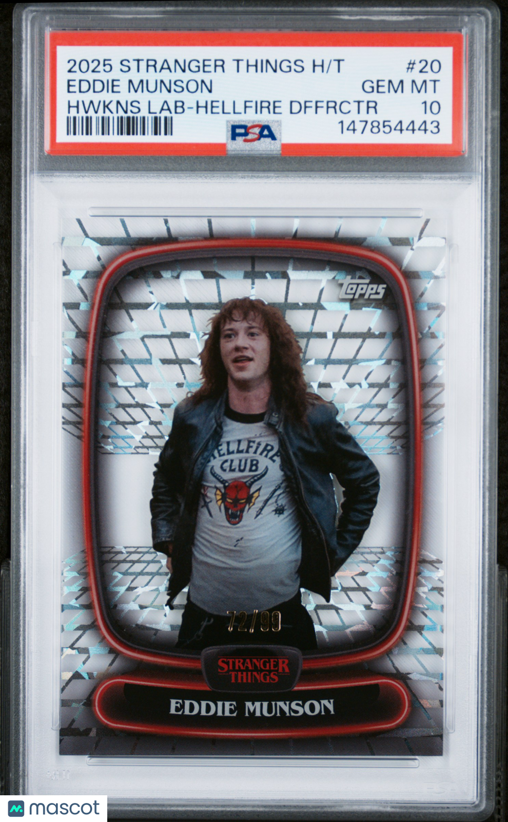 2025 Topps Stranger Things High Tek Eddie Munson #20 Hellfire Diffractor PSA 10
