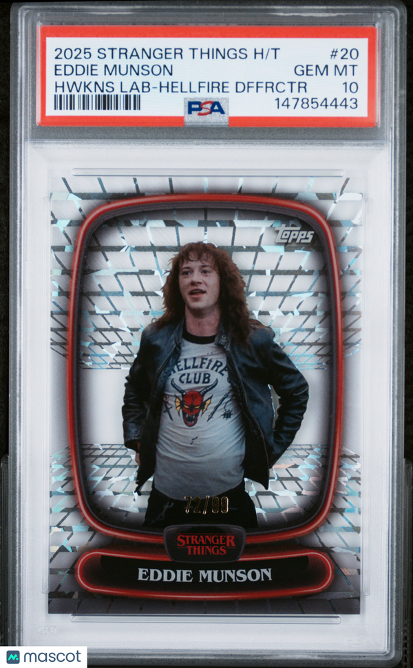 You are purchasing a 2025 Topps Stranger Things High Tek Eddie Munson #20 Hwkns Lab Hellfire Dffrctr PSA 10. You will receive the exact item in the photographs. Thank you for looking.